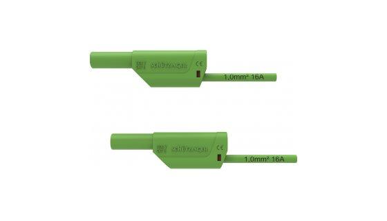 2 safety lamella-basket plugs with inline socket, assembled on highly flexible double insulated PVC cable 1 mm²