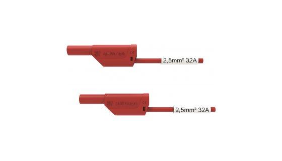 2 safety lamella-basket plugs with inline socket, assembled on highly flexible double insulated silicone cable 2.5 mm²