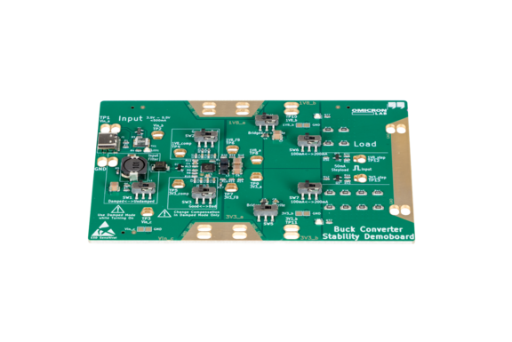 Buck Converter Stability Demoboard (DGN1DEMO-2) je kompaktní, snadno použitelná platforma navržená k demonstraci a analýze stability dvoukanálového buck měniče. Z vstupního napětí 3,5-5,5 V generuje 1,8 V a 3,3 V, což z ní dělá ideální nástroj pro laboratoře, školicí prostředí a každého, kdo chce vizualizovat reálné chování měniče.